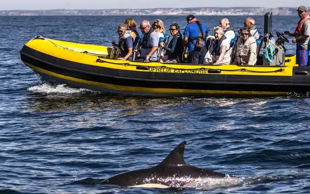 Experience the thrill of the open sea on a high-speed adventure that combines dolphin watching with a visit to the Algarve’s most iconic coastal formations. Departing from Portimão, this 2-hour speedboat tour offers a dynamic and memorable way to explore both marine wildlife and the region’s striking shoreline.