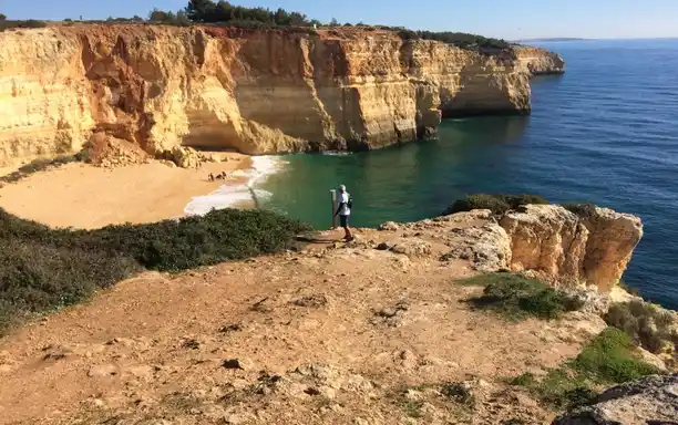 Begin your day with a guided walk along the famous Seven Hanging Valleys Trail, considered one of the most beautiful hikes in Europe. This moderate-level trail winds across golden cliffs and offers panoramic views of the Atlantic, with stops at iconic spots such as Benagil and Carvalho beaches. Along the way, admire dramatic rock formations, lush Mediterranean vegetation and the serene beauty of hidden coves.
