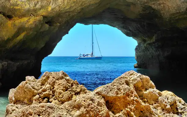 As the yacht sets course toward the Benagil and Carvoeiro region, enjoy the breathtaking scenery of the Algarve - towering cliffs, hidden coves and striking contrasts between sea and shore. Along the way, the experienced crew shares fascinating historical and geographical insights about the landmarks you pass. The yacht will approach iconic sea caves, including the famous Benagil Cave, as safely and closely as sea conditions allow.