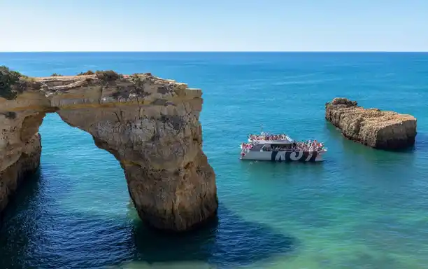 Along the way, you’ll pass impressive formations like the Arch of Triumph, Captain’s Cave and Submarine Beach, all sculpted by time and tides. We’ll also anchor near Praia da Marinha—consistently ranked among the most beautiful beaches in the world—for a refreshing swim stop (weather permitting).